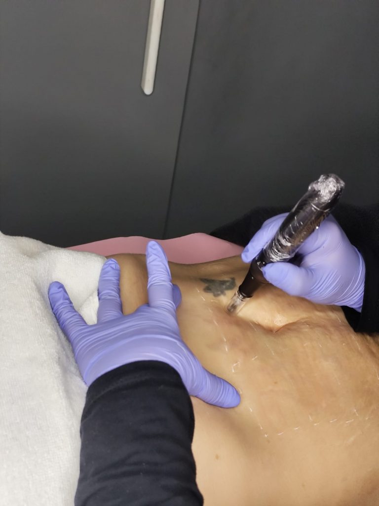 Zonas rebeldes efecto liposcult: mínimamente invasivo, realizado con dermapen, con esta técnica podemos tratar papada, zonas internas de brazos, zonas internas de muslos y rodillas.